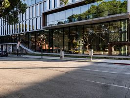 In the vibrant city of Los Angeles, modern architecture stands tall against the clear sky. Office buildings line the asphalt roads, showcasing the urban profile of this iconic California city. As you navigate the urban landscape, the blend of modern design and functional infrastructure paints a dynamic picture of life in this bustling metropolis, representing a unique facet of the USA.