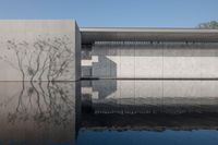 A stunning view of the modern architecture in Nanchang, China, with clear skies and artificial light illuminating the city at dawn.
