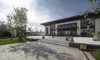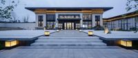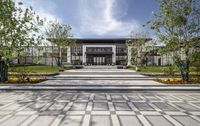 A stunning view of modern architecture in Qingdao, China, with clear skies and an open space plaza.