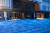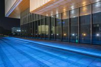 A stunning view of the modern architecture in Shanghai, China, with its futuristic buildings, neon lights, and reflective surfaces, creating a vibrant city scene at night.