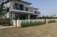A residential building in a suburban area of Shanghai, China, showcasing modern architecture and a well-maintained grass surface.