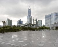 A stunning view of the modern architecture and skyline in Shanghai, China, against a grey sky.