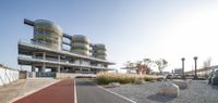 A stunning view of the modern architecture in Shanghai, China, with a clear sky and the city skyline in the background.