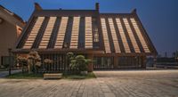 A view of the stunning modern architecture in the vibrant city of Shanghai, China during dawn, with clear skies and artificial light illuminating the surface.