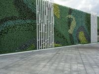 A view of a modern building surrounded by roads, pavement, grass, and vegetation in Shenzhen, China. Infrastructure such as walls, fences, hedges, and walkways can be seen in the foreground, while the towering structure stands tall in the background against a cloudy sky.