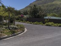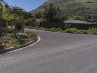 A scenic view of a modern architecture building in a residential area in South Africa, surrounded by lush vegetation and a clear sky.