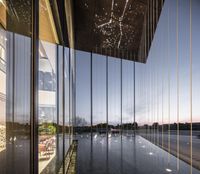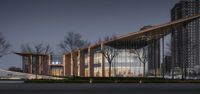 A stunning view of the modern architecture in Tianjin, China, during dawn. The clear sky and artificial light add to the beauty of the city's skyline.