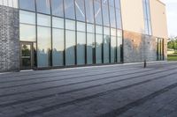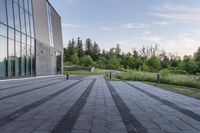 A stunning modern architecture building in Toronto, Canada, with a beautiful facade and glass walls. The building is located in the city's business district and serves as a corporate headquarters. The open space in front of the building provides a peaceful urban oasis for visitors and employees.