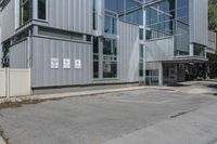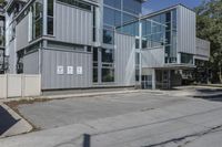 A view of a modern office building with glass walls in the bustling business district of Toronto, Canada.