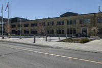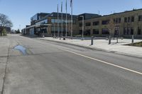 A stunning example of modern architecture in the city of Toronto, Canada. The sleek design of this building stands out against the clear sky, casting shadows and creating a beautiful play of light and shade.