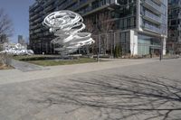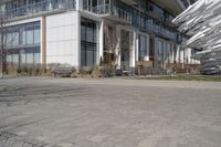 A modern residential building with a sleek design and concrete facade in a suburban neighborhood in Toronto, Ontario, Canada.