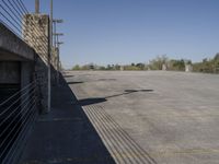 A view of a modern office building with a symmetrical facade and clear blue sky in the background, located in a bustling city