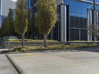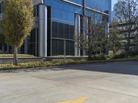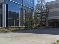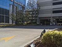 A view of a modern architecture building in a residential area of a city in the USA.