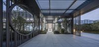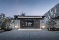 A stunning view of modern architecture in Xiangyang, China at dawn, with clear skies and artificial light illuminating the cityscape.