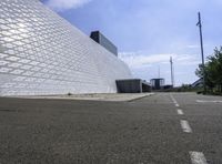 A view of the modern architecture in Zaragoza, Spain, with its low and high buildings, featuring a mixture of composite materials and concrete. The city's urban design is showcased through its office buildings, museums, and financial district. The clear sky and tree-lined streets add to the overall aesthetic of the cityscape.