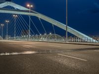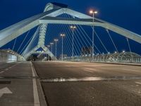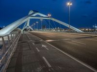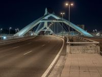 In the heart of Saragossa, Spain, a modern bridge stands as a testament to the city's innovative architecture and urban design. Whether it's the break of day or the dark of night, the bridge is illuminated by artificial light, casting a beautiful glow over the city. Clouds drift overhead, creating a dramatic backdrop for the urban landscape. The road leading to the bridge is lined with street lights, creating a captivating scene that captures the essence of city life in Europe.
