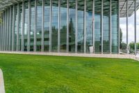 A view of a modern office building in the business district of Los Angeles, California. Urban greenery and modern architecture design can be seen in the foreground on this sunny day.
