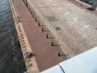 A view of modern architecture, infrastructure and businesses in Holland. The city is filled with rivers, bridges, asphalt roads, cobblestone pavers, street lights, traffic signs, public spaces, elevated buildings, office buildings, jetties, harbors, landings, and more. The city is alive with vibrant colors of grey concrete, wood, composite materials, brickwork, and vegetation, as well as people going on with their day-to-day lives.