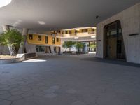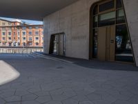 A view of a modern residential area in Germany. The city is bustling with life, showcasing its contemporary architecture and urban design. The clear sky and straight roads create a sense of openness and spaciousness. The concrete walls and pavers add to the modern aesthetic of the location.