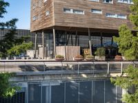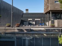A view of a modern cityscape in Holland, Europe. The composite material facade of a residential area is lined with an office building, high-rise, grass, metal wall, and trees. The clear sky provides light to the urban design of the metropolitan area, with a road surface lined with a fence and mesh, property, hotel, water, window, and public space. This landscape provides a look at city life and its leisure activities, with a profile of a condominium, skyscraper, and tower in the background.