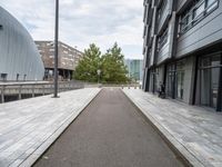 A view of the city of Holland from a high-rise building, featuring modern architecture, urban design, composite materials, grey surfaces, a residential area with trees, and a bustling thoroughfare filled with cars and infrastructure.
