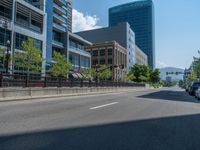 A stunning modern office building in the bustling city of Salt Lake City, Utah, USA. The architecture showcases a sleek and contemporary design, with its glass windows reflecting the vibrant urban surroundings. The road and asphalt nearby add to the city's bustling atmosphere, while the hard shadow cast by the building creates a striking visual contrast. This image perfectly captures the essence of city life and urban design in Salt Lake City.