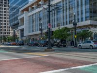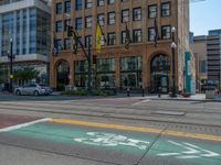 This stock photo showcases a modern office building located in Salt Lake City, Utah, USA. The city's urban design is evident in the business district, with its sleek architecture and well-maintained roads. The image captures the vibrant city life during the day, with hard shadows cast by the buildings adding depth to the scene. The asphalt road leading up to the office building perfectly complements the urban landscape. This photo is ideal for representing business, urban design, and modern architecture concepts.