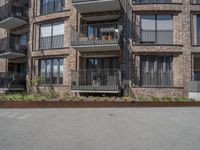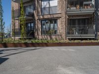 This stunning stock photo captures the essence of city life in Germany, showcasing the modern architecture and urban design of a residential area. The image features a road lined with brick walls and cobblestone, leading to a warehouse or storage facility. The clear sky casts hard shadows on the asphalt, adding depth to the composition. The combination of clear lines, contemporary design, and historical elements creates an intriguing contrast. This photo is perfect for illustrating urban living, architectural concepts, or showcasing the beauty of Germany.