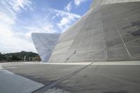 A bird's eye view of a modern urban business district, featuring a mix of concrete roads, office buildings, metal walls, and glass facades reflecting sunlight. Trees and contrails can be seen in the distance, making it a great tourist attraction and vacation spot.