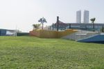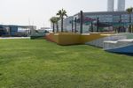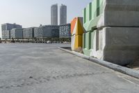 A view of the bustling city of Dubai, United Arab Emirates, with its towering buildings, paved roads, and open public spaces, illuminated by a clear blue sky.