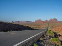 In the heart of the USA, Monument Valley showcases breathtaking landscapes at the break of day. The clear sky frames the iconic road featured in 'Forrest Gump', leading through Arizona and Utah. Nature's beauty unfolds along the asphalt road, with one-quarter of the journey offering stunning views of this picturesque American scenery.