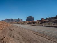 In the iconic landscapes of Monument Valley, Arizona and Utah offer a mesmerizing blend of roads and tracks cutting through the rugged terrain. The clear skies above highlight the natural beauty of the area, perfect for off-road adventures. Whether it's a dirt street or a gravel road, the straight paths lead you on a journey through one quarter of the vast and picturesque scenery, showcasing the raw beauty of nature under the bright daylight.