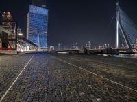 The sun rises over the Amsterdam skyline, illuminating the cobblestone streets, tall buildings, and residential neighborhoods. Cable-stayed bridges provide a way across the lake, while sailboats traverse the shimmering azure waters. This is the city life of the Netherlands in the warm afterglow of a new day.