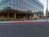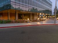 Dawn breaks over the busy streets of Los Angeles, California, USA. Artificial light illuminates the modern architecture and urban design of the cityscape.