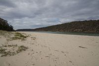 A stunning view of a mountain landscape at dawn, with the clouds hovering over the peaks and the coastal bank visible in the distance.