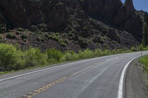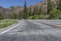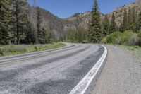 Scenic mountain road surrounded by lush vegetation and tall trees in Crested Butte, Colorado, USA on a sunny day