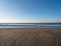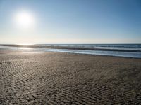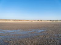 A tranquil and serene atmosphere is visible in this picture of the Holland coast on a sunny day. Azure waters of the ocean meet a sandy beach, with a coastal wetland and sand dunes visible in the background. Wooded areas and open space provide a natural environment for the shore, with clear skies and sunlight creating a peaceful and calm atmosphere.