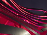 A mesmerizing view of neon lights illuminating the cityscape of Los Angeles during dawn. The artistic combination of pink, magenta, and red neon lights creates a vibrant and visually stunning scene in the urban landscape.