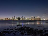 The sun rises over the city skyline of Miami Beach, Florida, USA, reflecting off the open water and creating a beautiful coastal urban design for a sunny day.