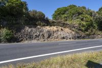 Scenic landscape of Erua, New Zealand, with a well-maintained asphalt road winding through lush vegetation and trees under a clear sky during the day.