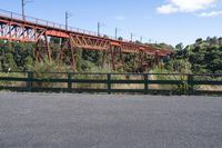 A scenic view of the Makatote Viaduct in New Zealand, showcasing a low landscape with a concrete bridge, clear sky, and lush green grass along the road.
