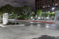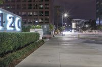A view of the modern architecture and city lights in Los Angeles, California, USA at night.