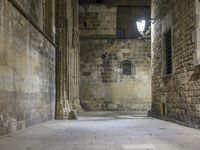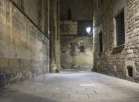 A mesmerizing view of Barcelona city at night, showcasing its low-lying buildings, historic architecture, and charming old town streets illuminated by street lights.