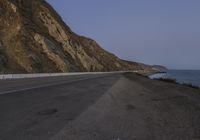 A stunning night view of a coastal road in California, USA, with the dark ocean waters on one side and the clear night sky above.