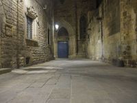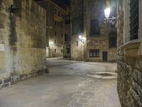 A picturesque alley-way in the old town of Barcelona, Spain, showcasing the gothic architecture and historic charm of the city at night.