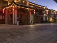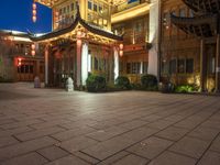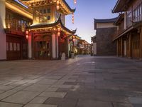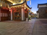 Cityscape of Lijiang, a historic town in Yunnan, China, with traditional architecture and cobblestone roads illuminated by artificial light at night.