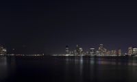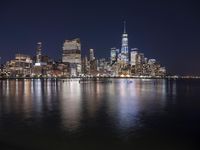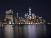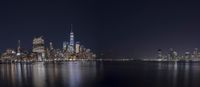 A stunning night view of the iconic New York City skyline, showcasing the modern architecture and bustling metropolis of Manhattan.