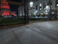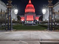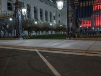 A stunning night view of the iconic cityscape of San Francisco, California, USA. The city's classic architecture stands out against the dark night sky, illuminated by the warm glow of street lights and artificial light. The concrete surface of the urban streets and the profile of the road create a captivating image.