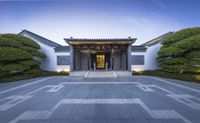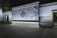 A stunning night view of the historic architecture in Hinterhof, Shanghai, China. The beautifully illuminated buildings showcase the classic architecture and rich cultural heritage of the city.