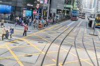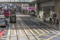 Aerial view of the busy city streets with elevated road and transportation in Hong Kong, China at night.